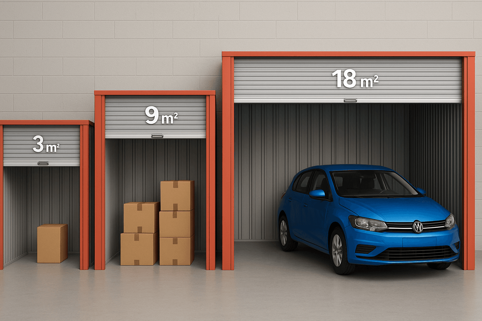 From 1 m² up to 30 m²+, covered units, vehicle access, and security included.